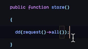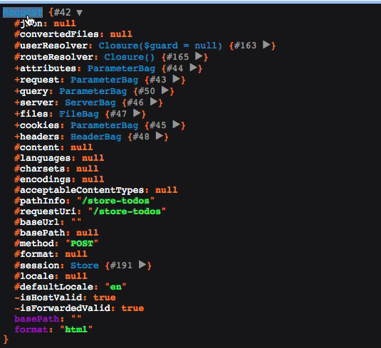 requestオブジェクトから実際に値を取得するためにallメソッドを使用することで連想配列の形に変換する必要がある