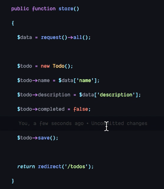 requestオブジェクトをいったん連想配列にしてからModelクラスのオブジェクトのプロパティにそのまま代入することでInsert(データの新規作成)できる