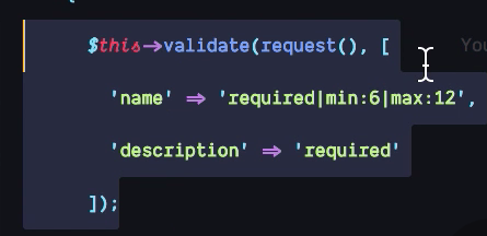 so easy!! 位置から実装しようとすると地味にめんどうだったりするバリデーションもララベルだと一瞬でできます。