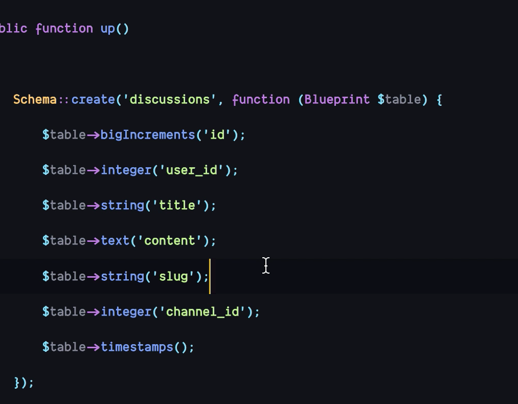 discussionsテーブルはuserとchannelに対して従属する立場でOneToManyのリレーションを持っている