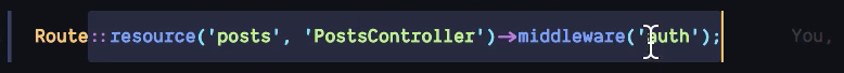 下記の例では元々デフォルトで入っていたauthミドルウェアと今回作成したmiddlewareを併用